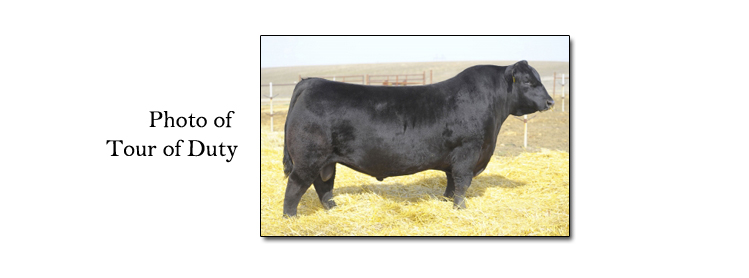 The breeding bull is from the Tour of Duty registered Black Angus stud line. Tour of Duty shocked the state of Minnesota selling for $55,000