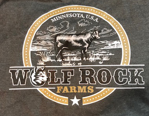 Wolf Rock Farms Heather Gray T-Shirt Small logo front left with larger logo on back (60% Cotton & 40% Polyester) $30.00
